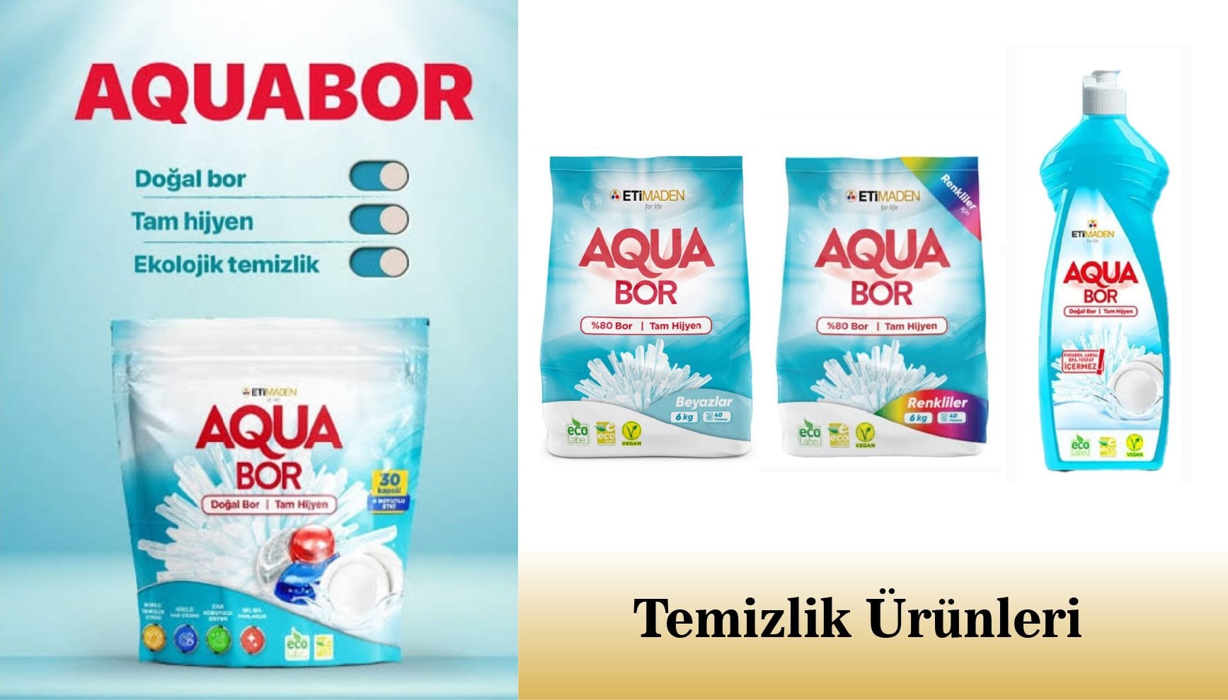 AQUABOR DOĞAL MİNERALLİ BULAŞIK DETERJANI +BOR MİNERALLİ BEYAZLAR İÇİN ÇAMAŞIR DETERJANI
